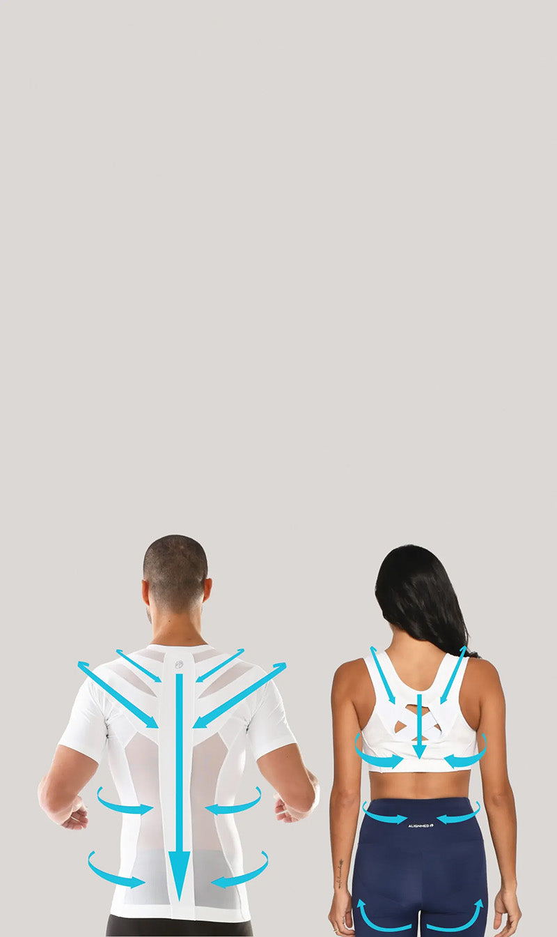 Alignmed foi inspirado no Kinesio Tape - um tratamento frequentemente usado por fisioterapeutas e quiropráticos para tratar dores e tensões no pescoço, ombros e costas.